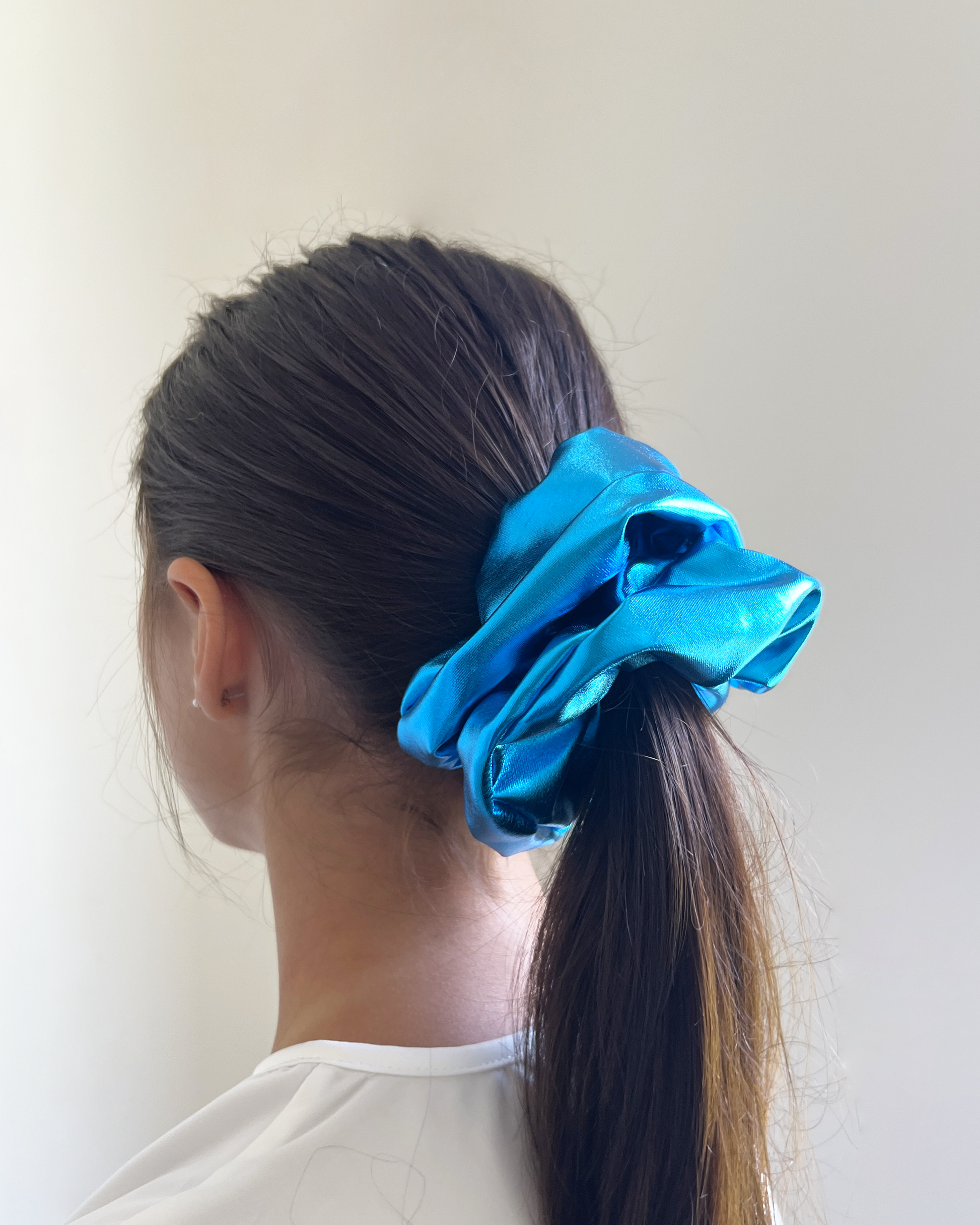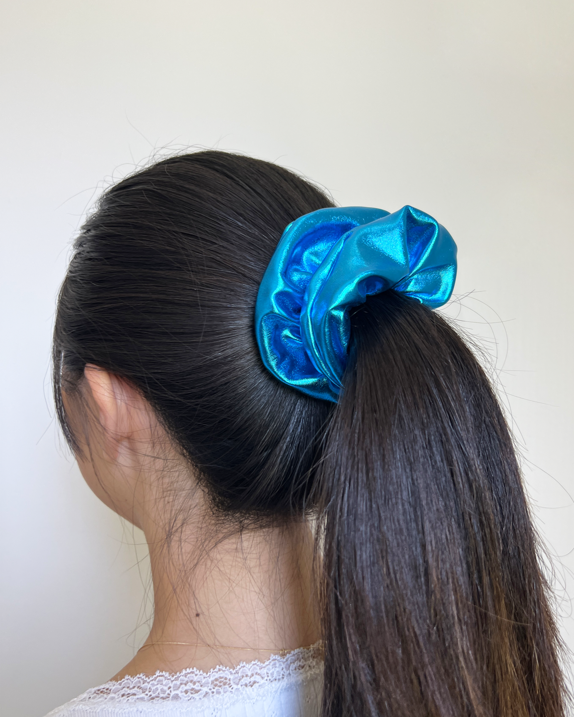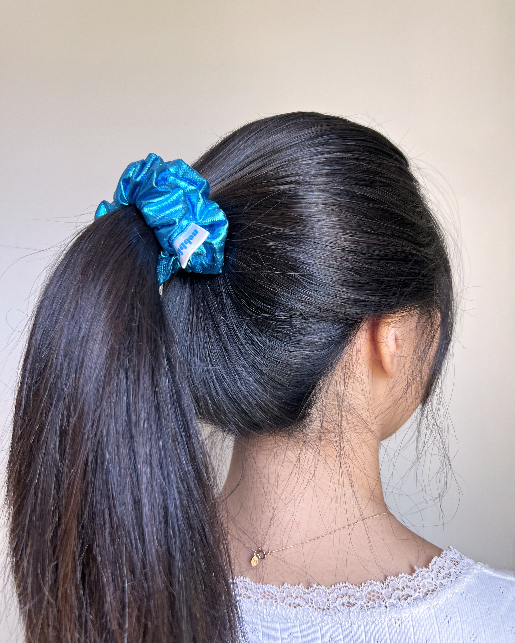 Inspired by the bold moves and brighter moods of the '80s and '90s, this scrunchie brings back the spirit of classic aerobics fashion — with a modern twist. It is made from vivid stretch fabric with a beautiful shimmer. It features a wide band design that provides both style and hold.
