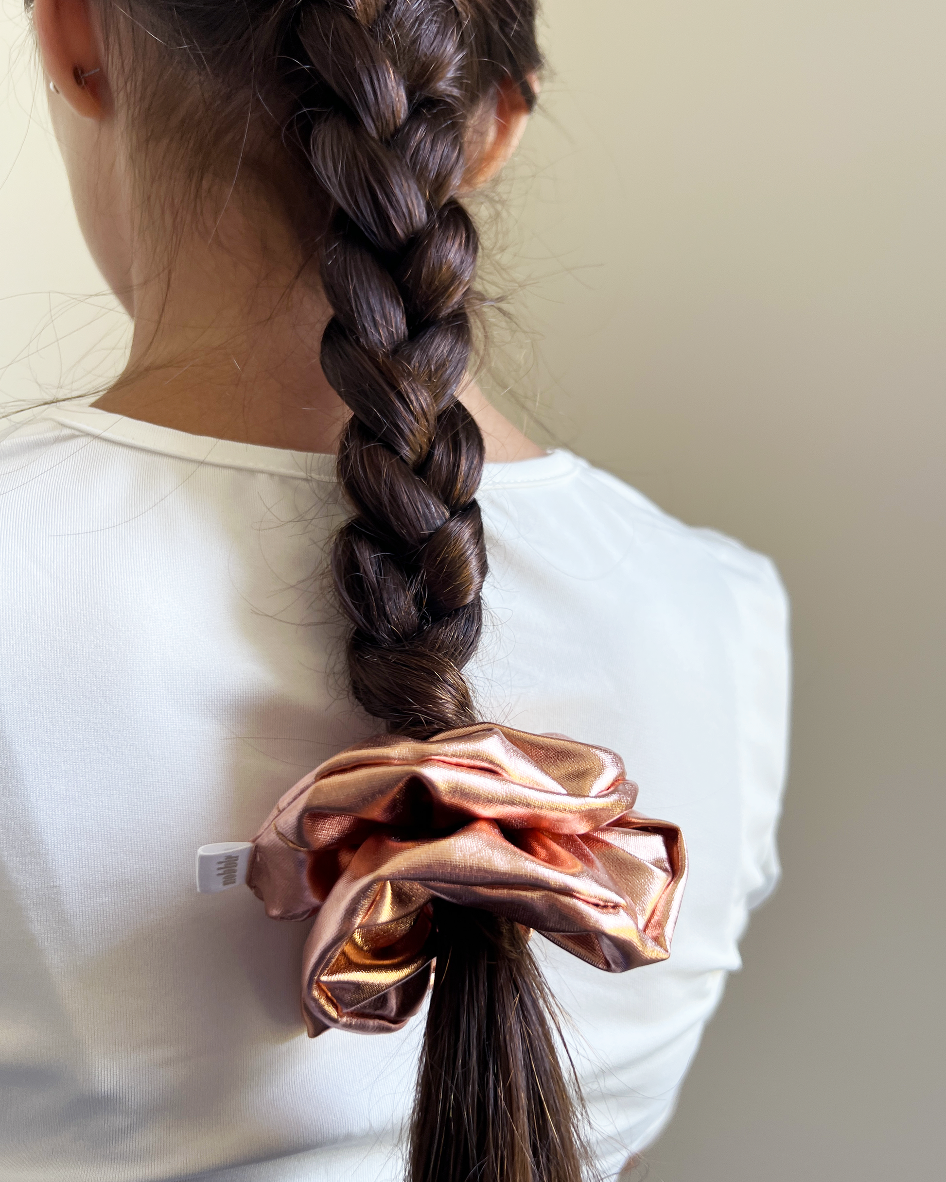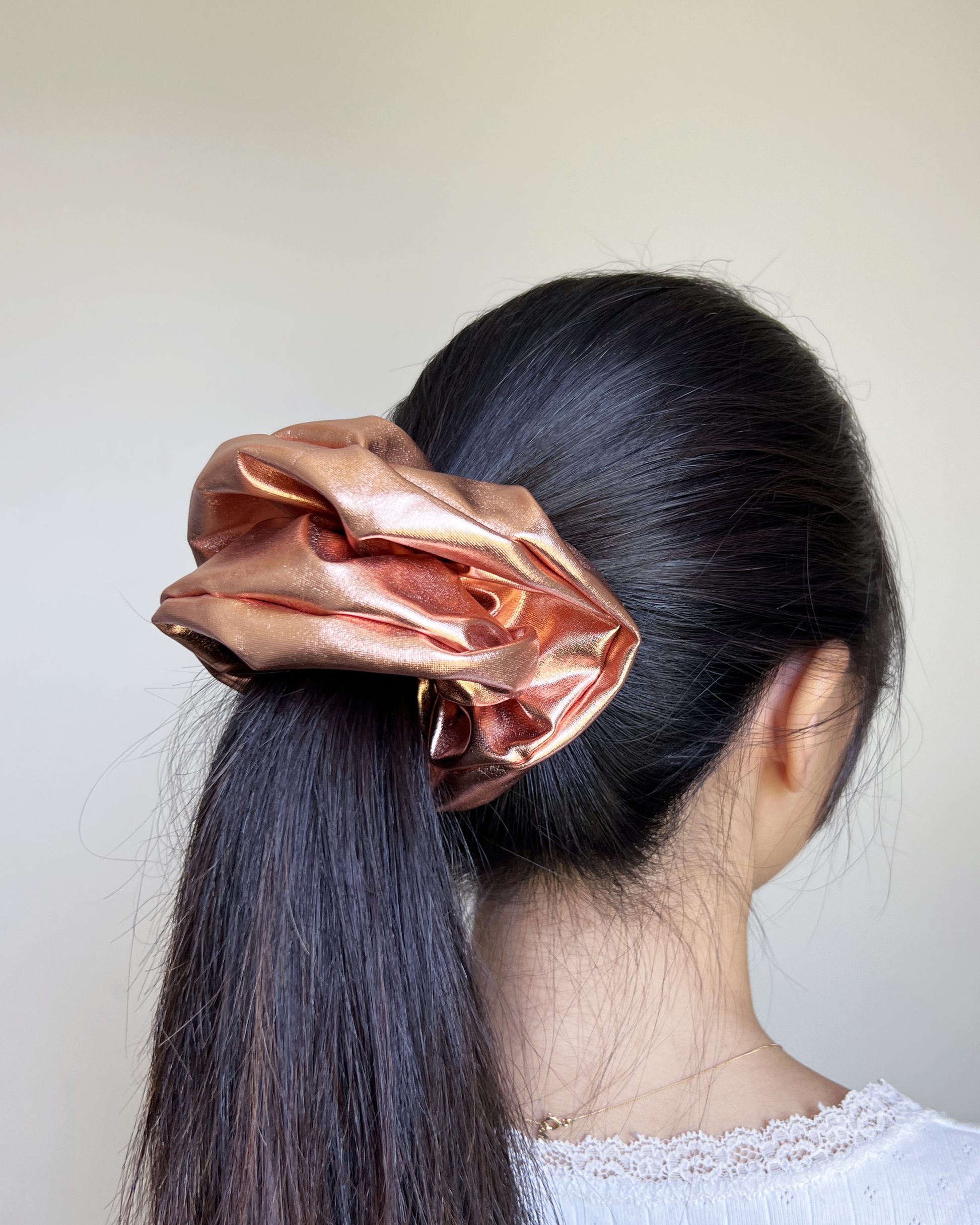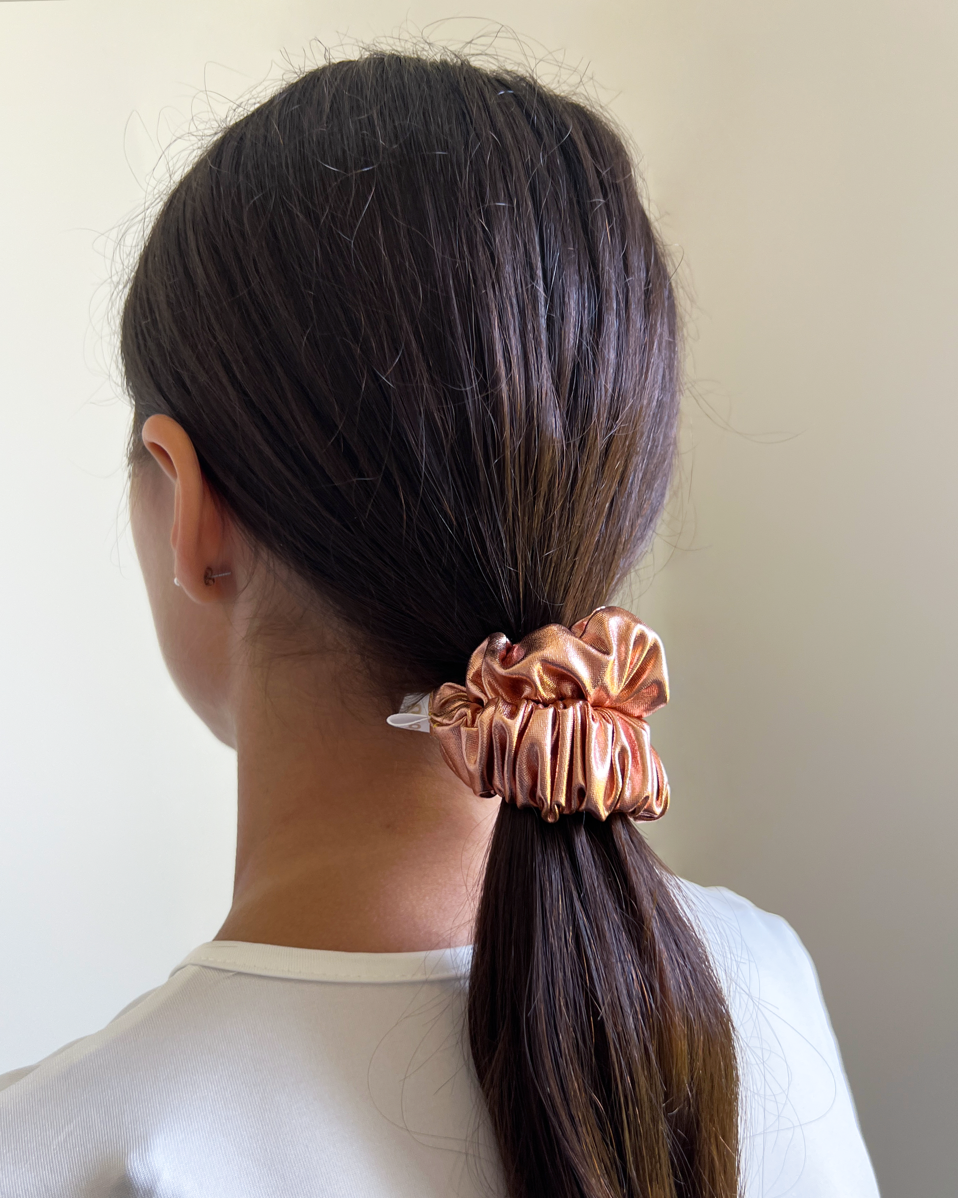 Inspired by the bold moves and brighter moods of the '80s and '90s, this scrunchie brings back the spirit of classic aerobics fashion — with a modern twist. It is made from vivid stretch fabric with a beautiful shimmer. It features a wide band design that provides both style and hold.