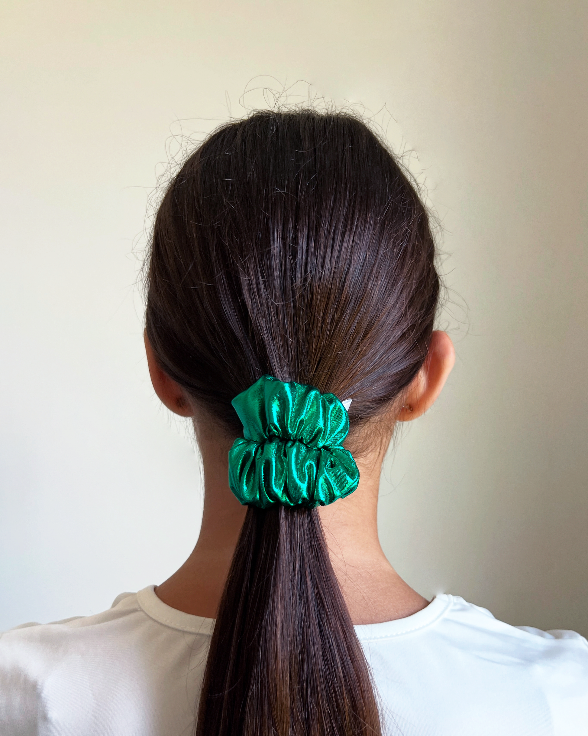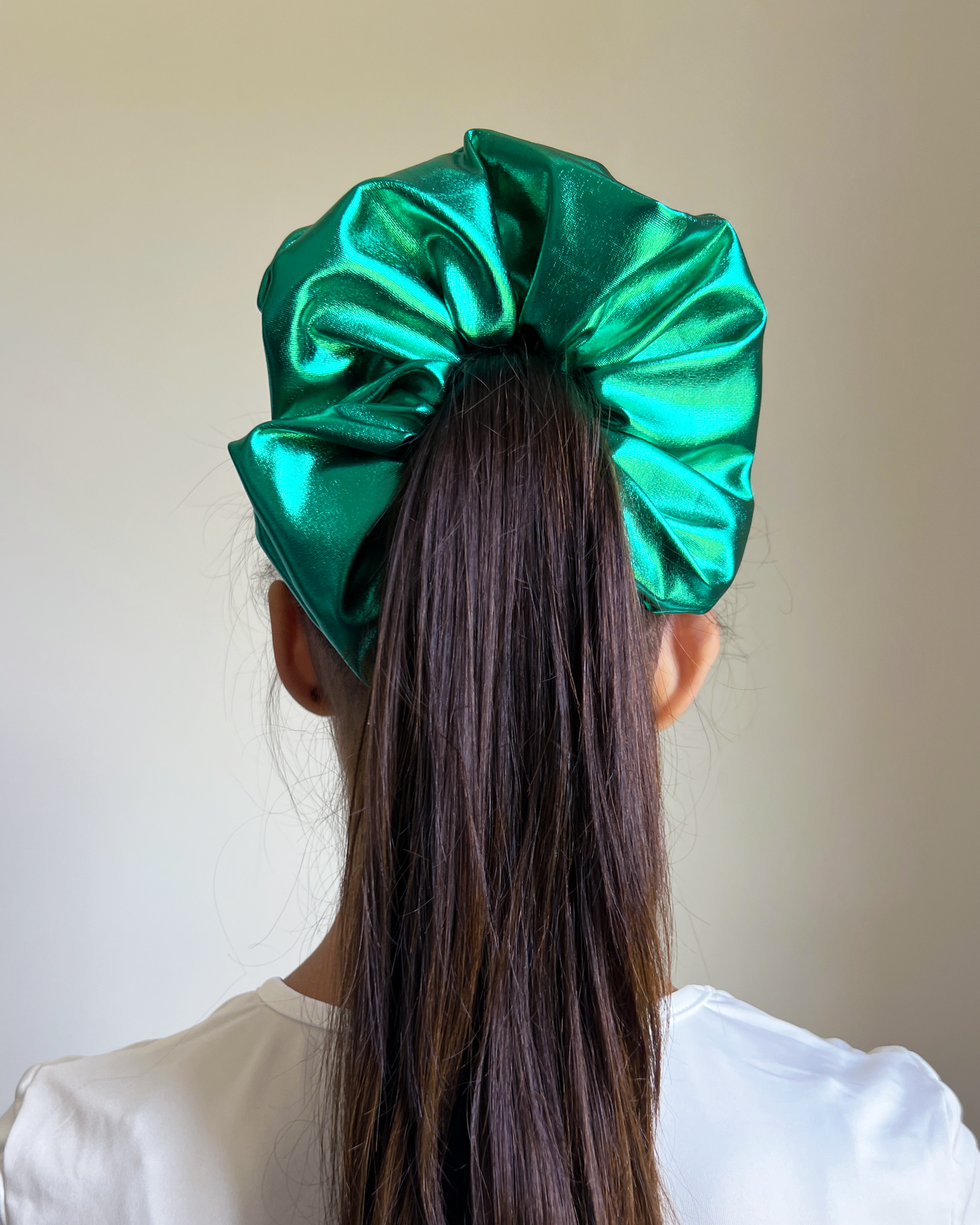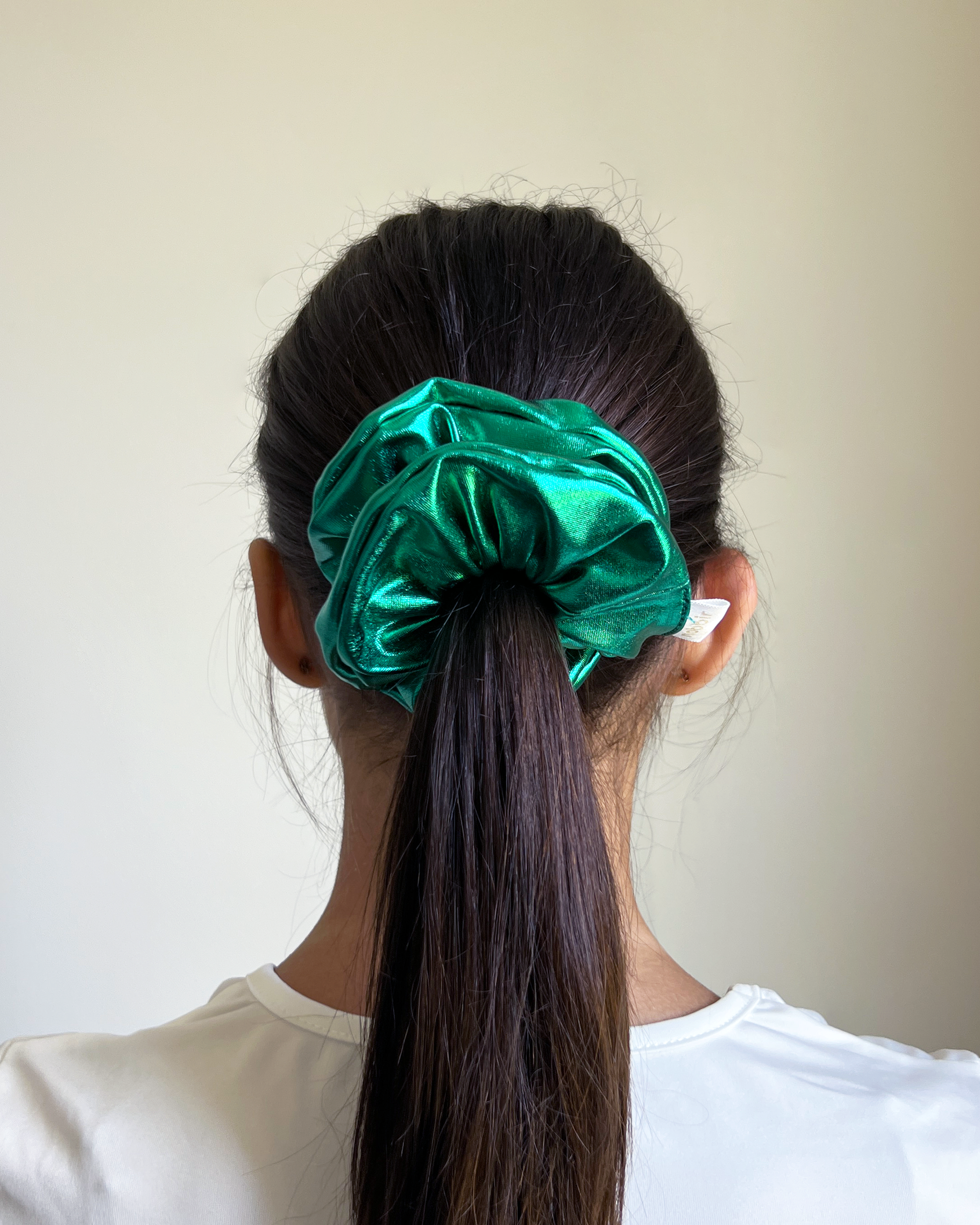 Inspired by the bold moves and brighter moods of the '80s and '90s, this scrunchie brings back the spirit of classic aerobics fashion — with a modern twist. It is made from vivid stretch fabric with a beautiful shimmer. It features a wide band design that provides both style and hold.