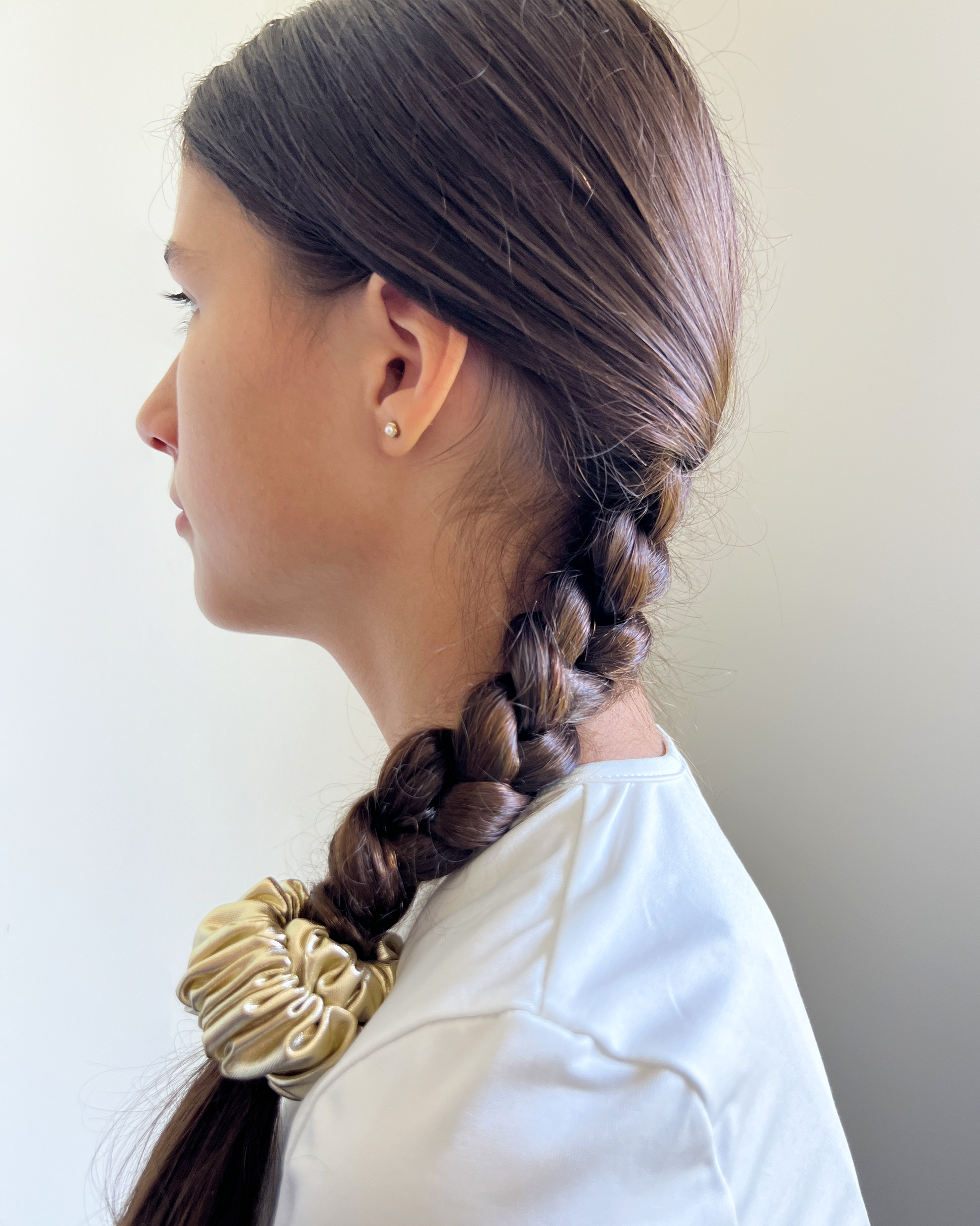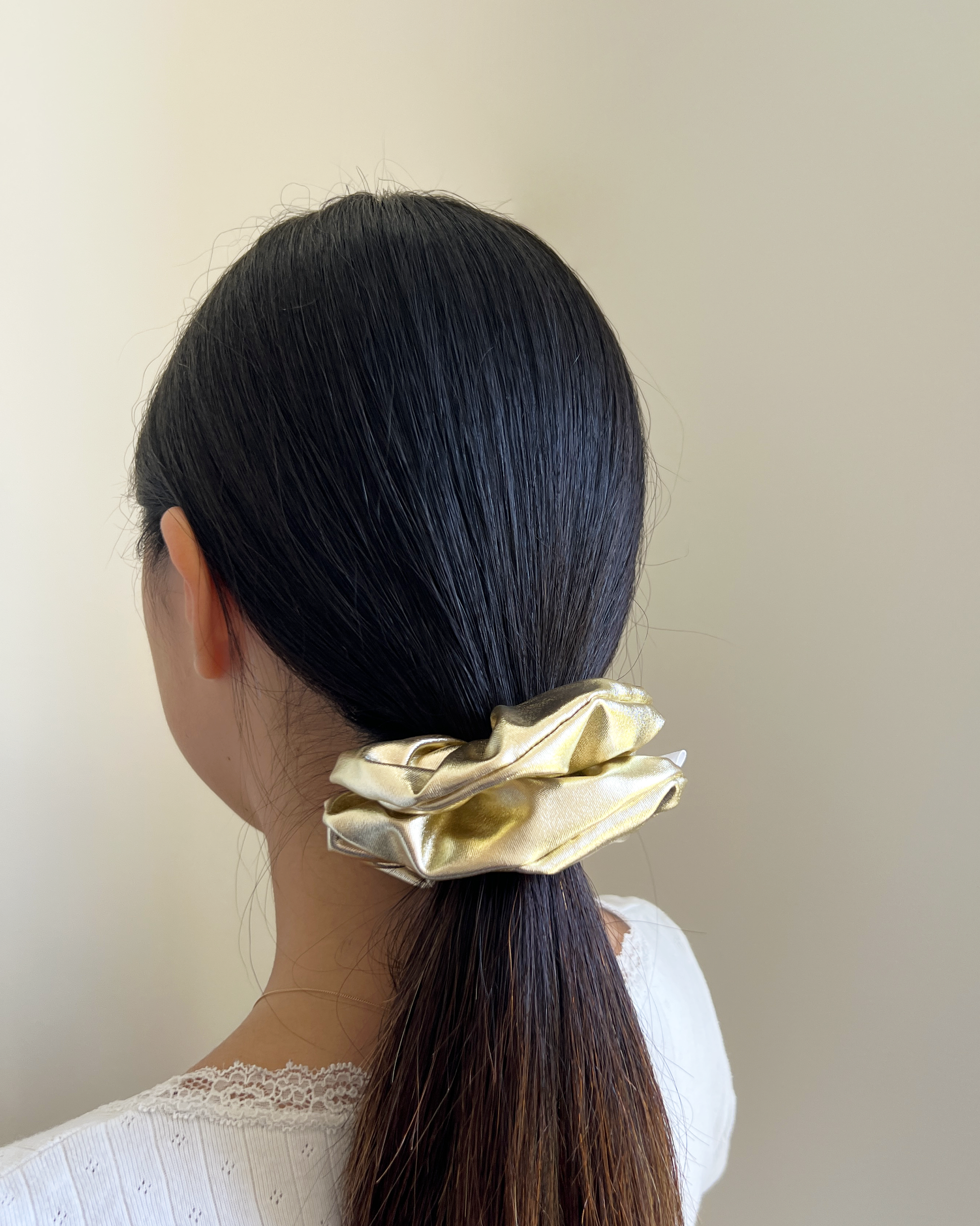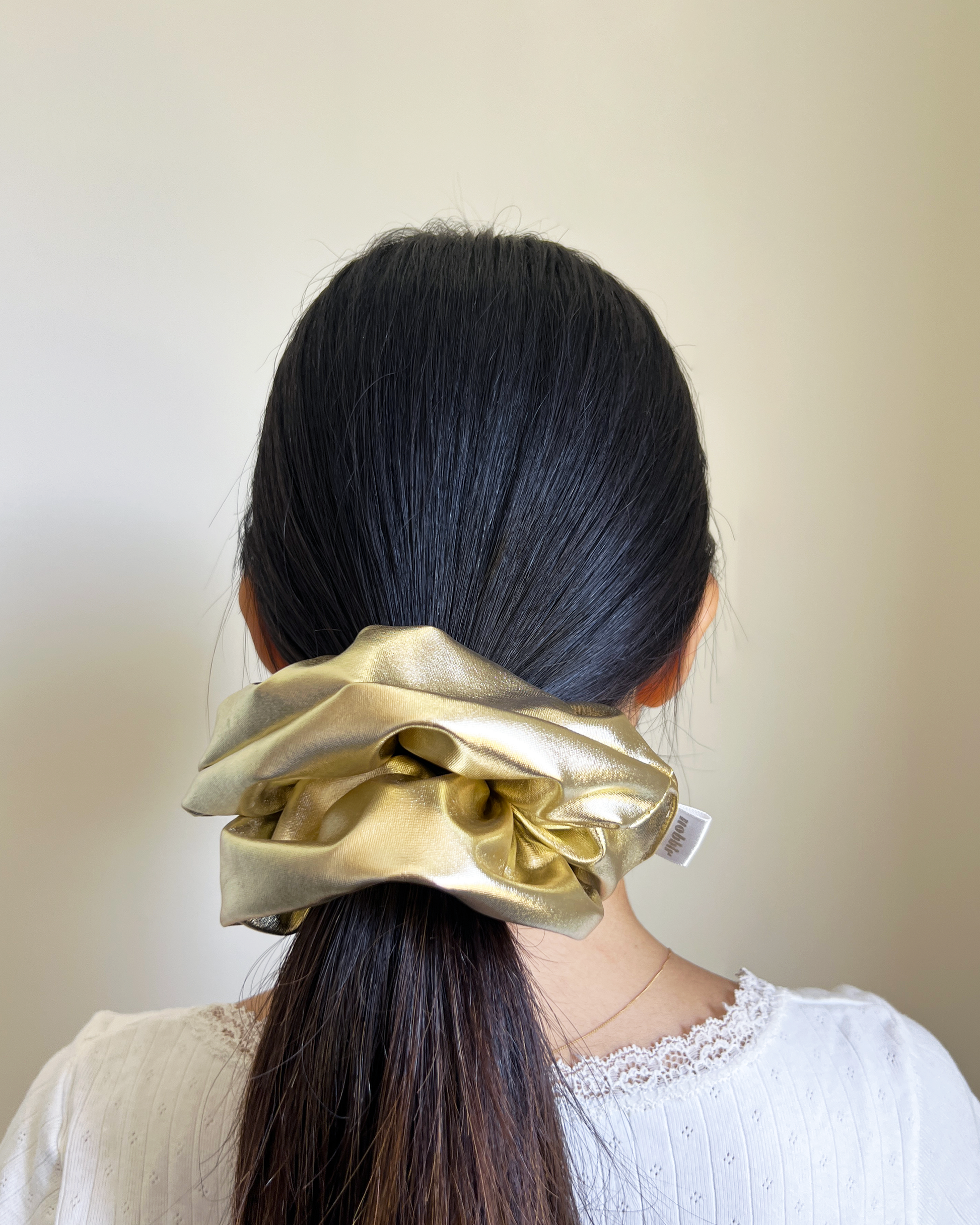 Inspired by the bold moves and brighter moods of the '80s and '90s, this scrunchie brings back the spirit of classic aerobics fashion — with a modern twist. It is made from vivid stretch fabric with a beautiful shimmer. It features a wide band design that provides both style and hold.